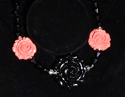 16.5 Black/Peach Ceramic Rose Choker with matching earrings